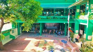 Gedung Bertingkat hingga lantai 3, Kelas Ber-AC dan tersedia PC serta Smart TV sebagai penunjang pembelajaran siswa.